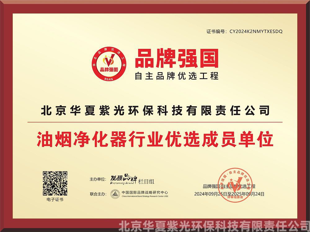 近期,經(jīng)過資質(zhì)審核、輿情監(jiān)控等層層篩選,“華夏紫光”成功入選為品牌強國優(yōu)選工程油煙凈化器行業(yè)優(yōu)選成員單位,企業(yè)信息錄入品牌強國優(yōu)選工程數(shù)據(jù)庫,在***平臺向公眾展示品牌形象。